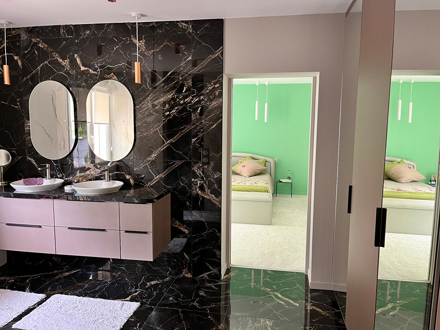 Loin du tumulte urbain, dans un secteur d’habitat qualitatif, ce bien offre en outre tous les équipements contemporains: Domotique, sécurisation, fibre, borne HT de recharge…